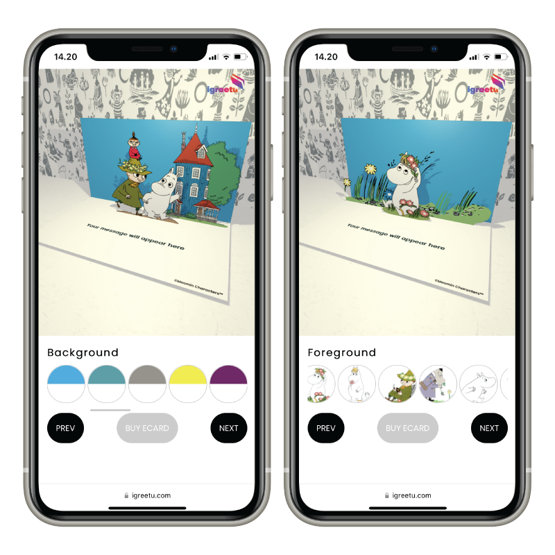 Want to remember your loved one in a Moominous way? You can choose the picture for your card from more than 100 different Moomin illustrations and customize the card by choosing the background colour. You can naturally also write your own greetings to the card and decide what you want to write on the digital envelope.